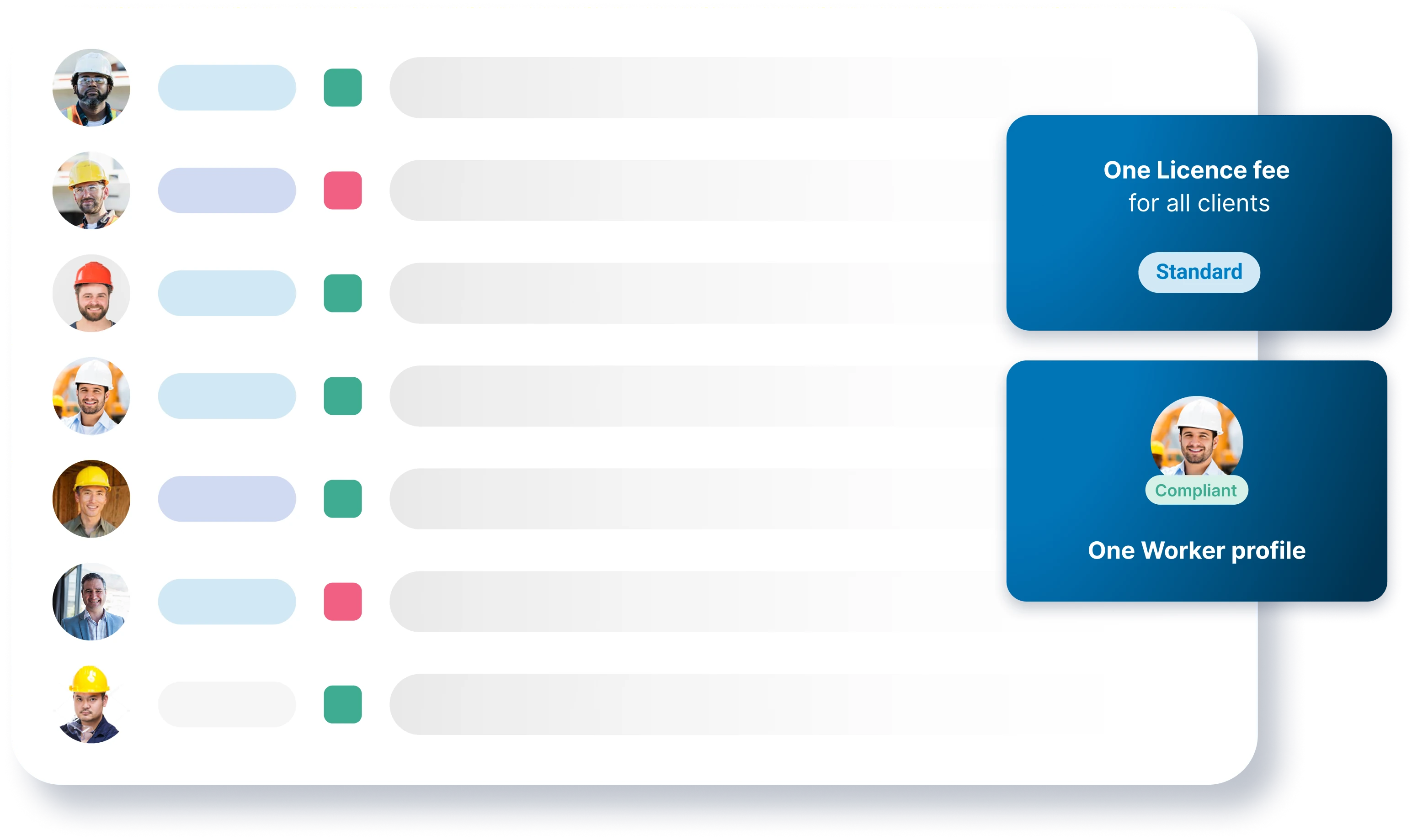 Easily onboard and manage WHS info (including documents, training and licences) for Workers for all of your Clients.
