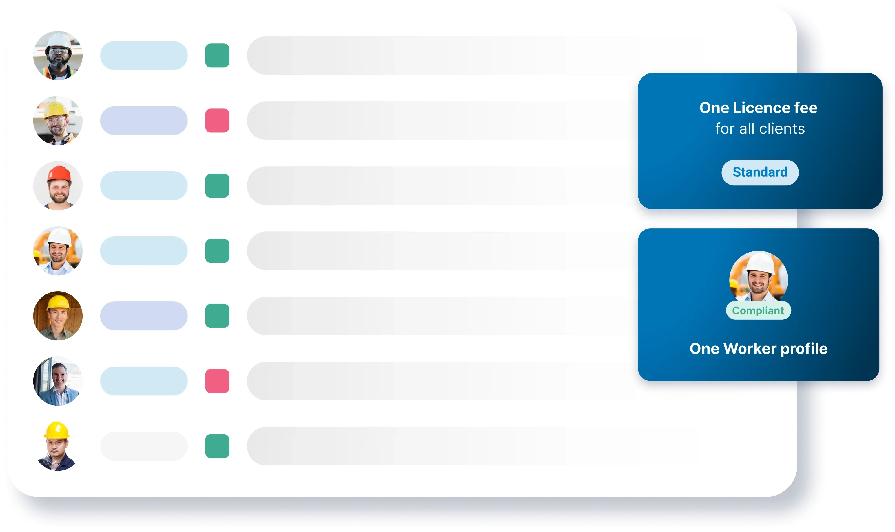 Easily onboard and manage WHS info (including documents, training and licences) for Workers for all of your Clients.